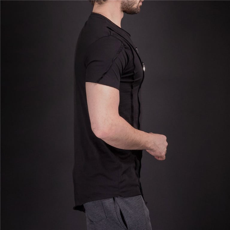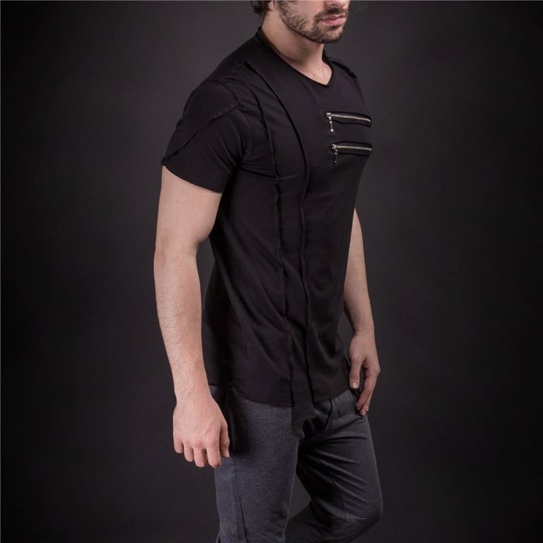 Men's short-sleeve t-shirt. Decorative stitching and zips on the front. Available in multiple colour options.