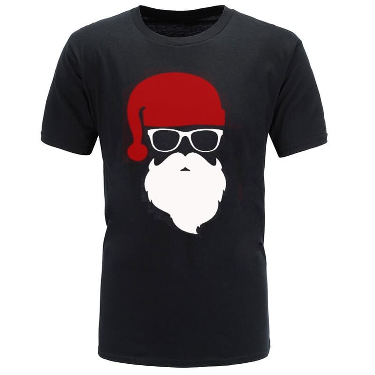 Men's short-sleeved t-shirt with a round neckline. Loose fit. Print with a Christmas Santa Claus motif on the front.
