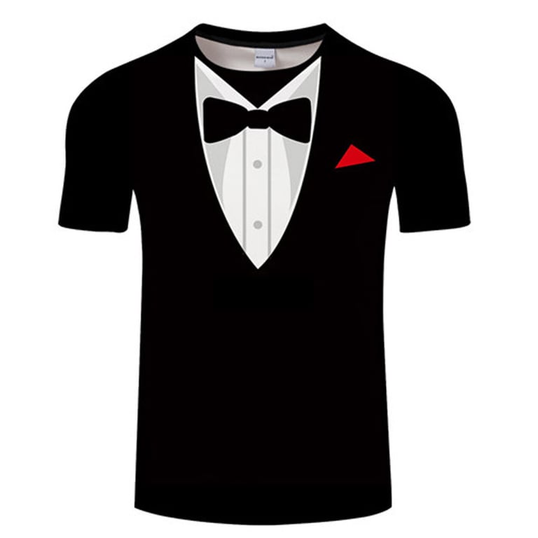 Men's short-sleeved t-shirt with a round neckline. Original colourful print featuring a tuxedo design.
