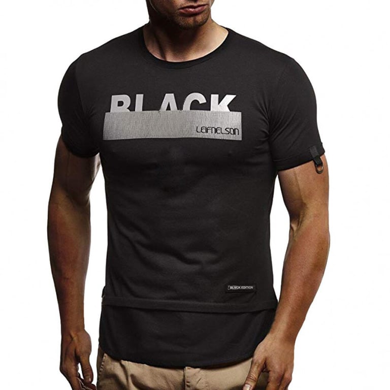 Men's short-sleeved t-shirt with a round neckline. Fitted cut. Print with text on the front. Available in multiple colour options.