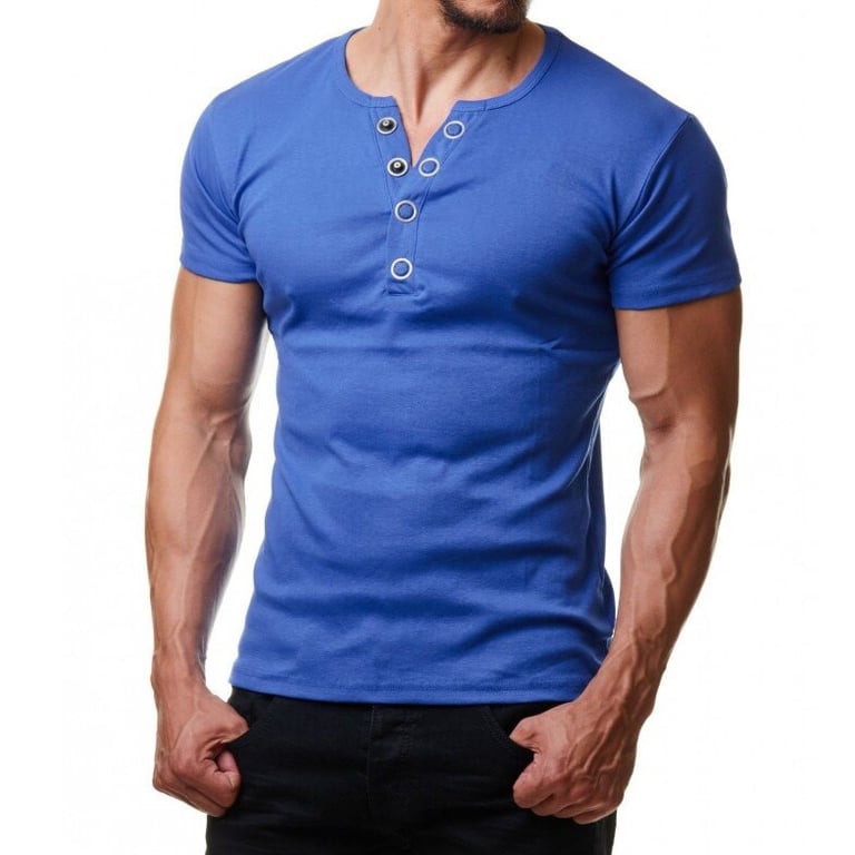 Men's short-sleeved t-shirt with a buttoned neckline. Fitted cut. Available in multiple colour options.