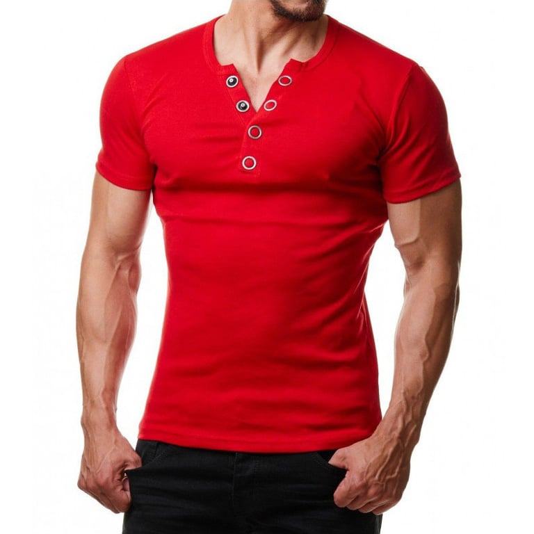 Men's short-sleeve t-shirt with a buttoned neckline. Fitted cut. Available in multiple colour options.