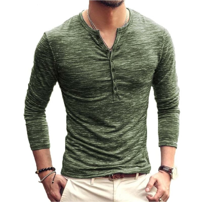 Men's long-sleeve t-shirt with a buttoned neckline. Melange. Fitted cut. Available in multiple colours.