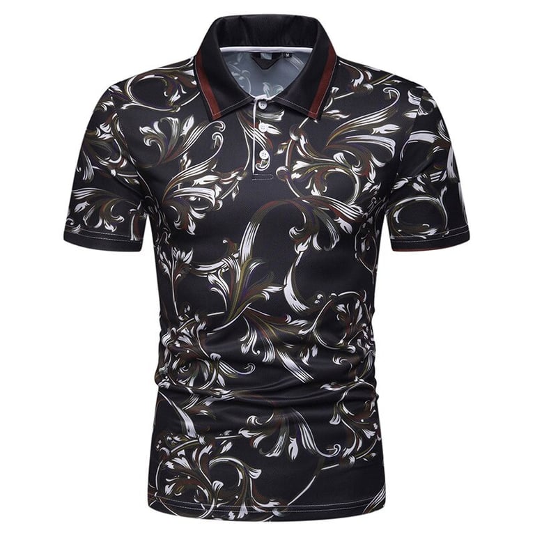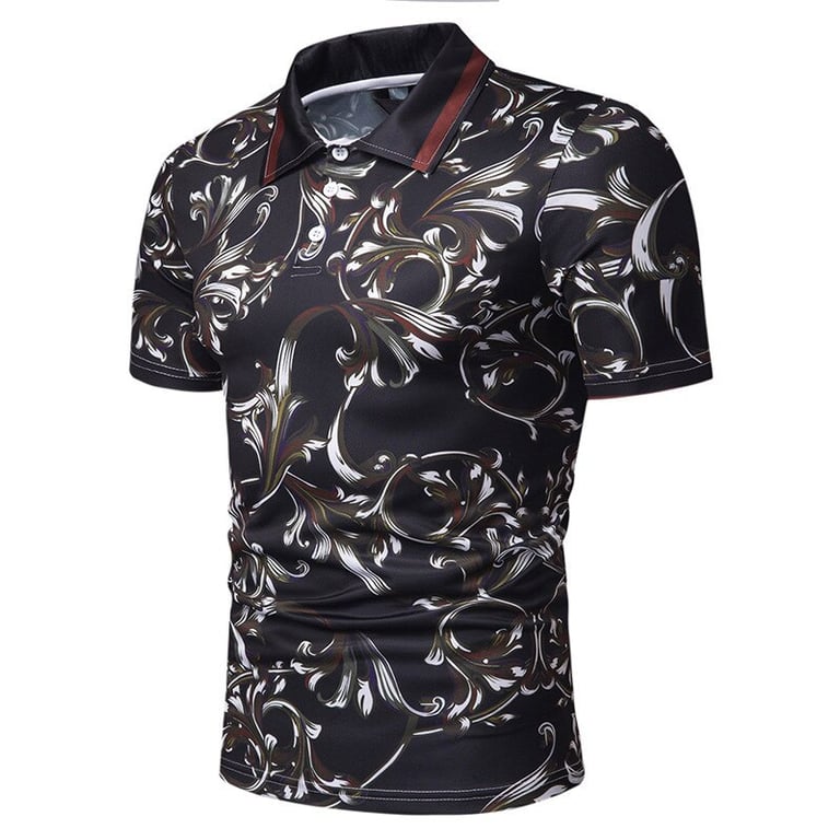 Men's t-shirt with a colourful print. Fitted cut with short sleeves. Collar neckline. Available in two colour options.