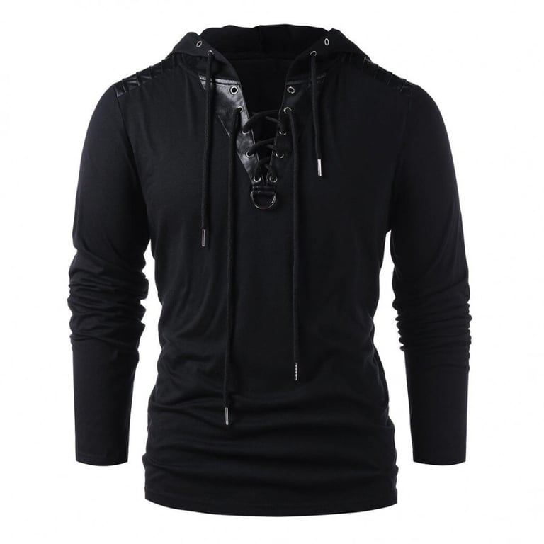 Men's long-sleeve t-shirt with a fitted cut. V-neckline with lacing and faux leather trim. Available in multiple colour options.