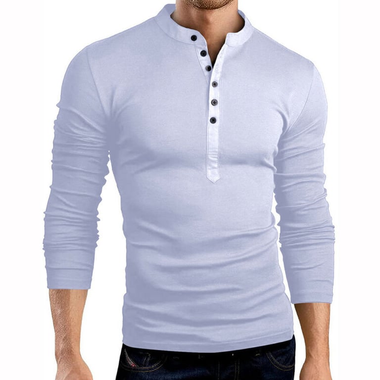 Men's long-sleeve t-shirt with a round collar and button fastening. Fitted cut. Available in multiple colour options.