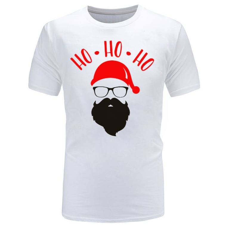 Men's short-sleeved t-shirt with a round neckline. Loose fit. Print with a Christmas motif of Santa Claus on the front.