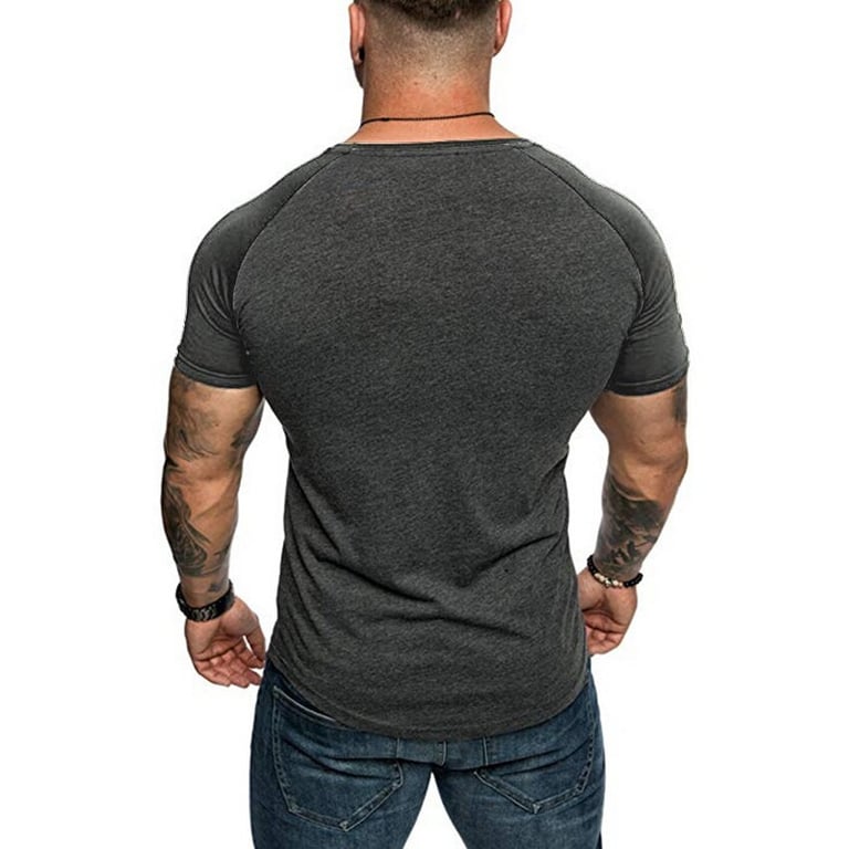 Men's short-sleeve t-shirt with a round neck and buttons. Fitted cut. Available in multiple colour options.