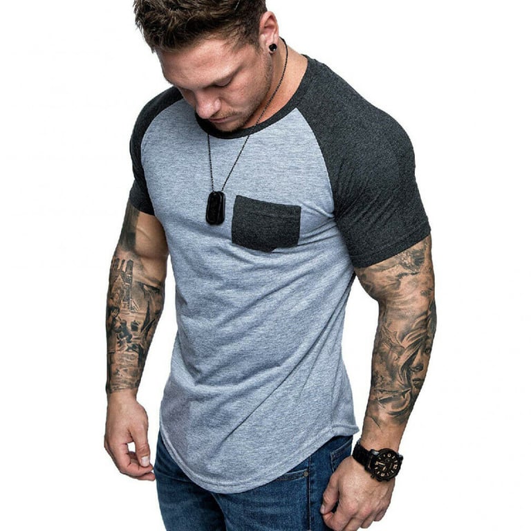 Men's short-sleeved t-shirt with a round neckline. Chest pocket. Fitted cut. Available in multiple colour options.
