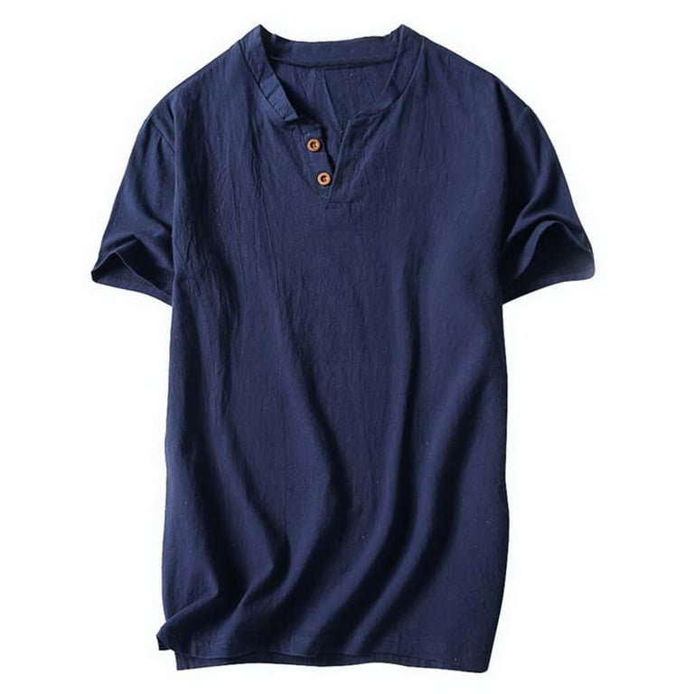 Men's short-sleeved t-shirt with a V-neck and buttons. Loose fit. Available in multiple colour options.
