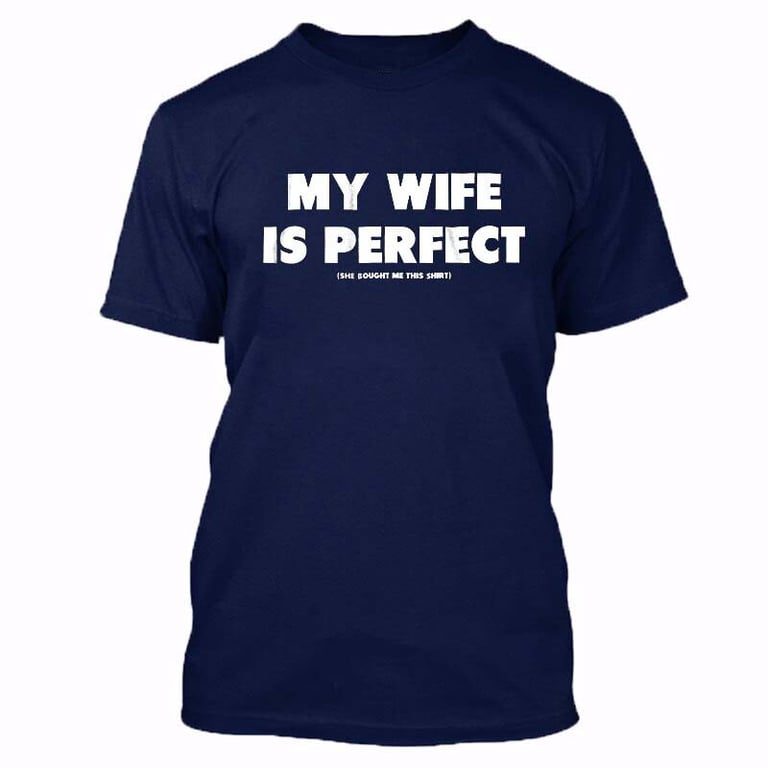 Stylish men's t-shirt with the funny slogan “My wife is perfect, she bought me this shirt”. The t-shirt makes a perfect gift for any man. We offer more colour options.