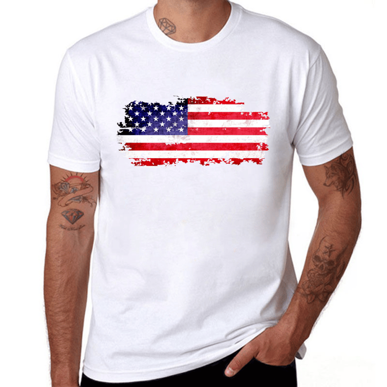 Quality T-shirt with a large print of the flag of the United States of America on the chest.
