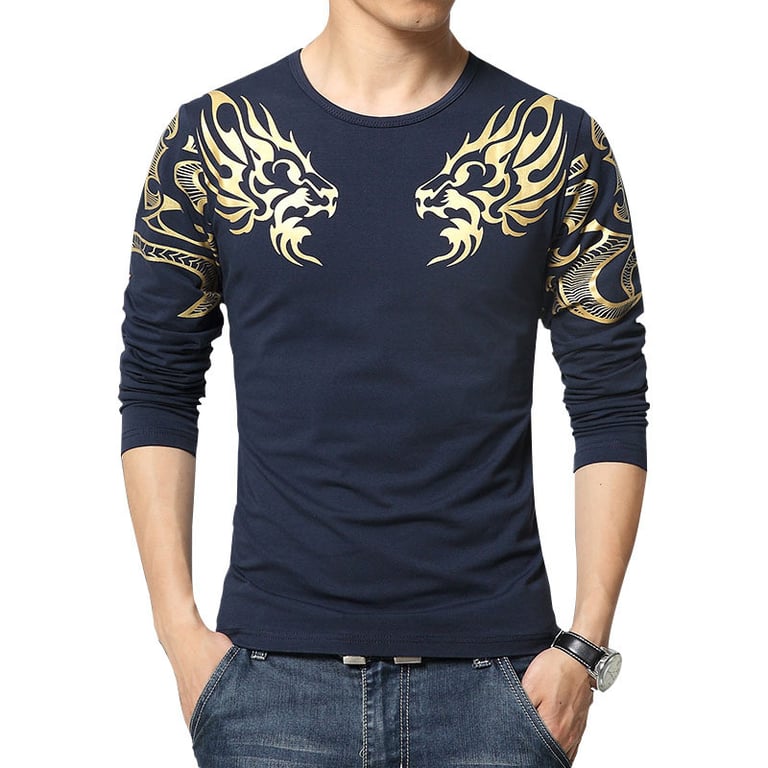 Men's long-sleeve t-shirt with a round neckline. Fitted cut. Interesting print on the shoulders. Available in multiple colour variants.
