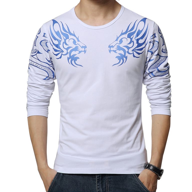 Men's long-sleeve t-shirt with a round neckline. Fitted cut. Interesting print on the shoulders. Available in multiple colour variants.