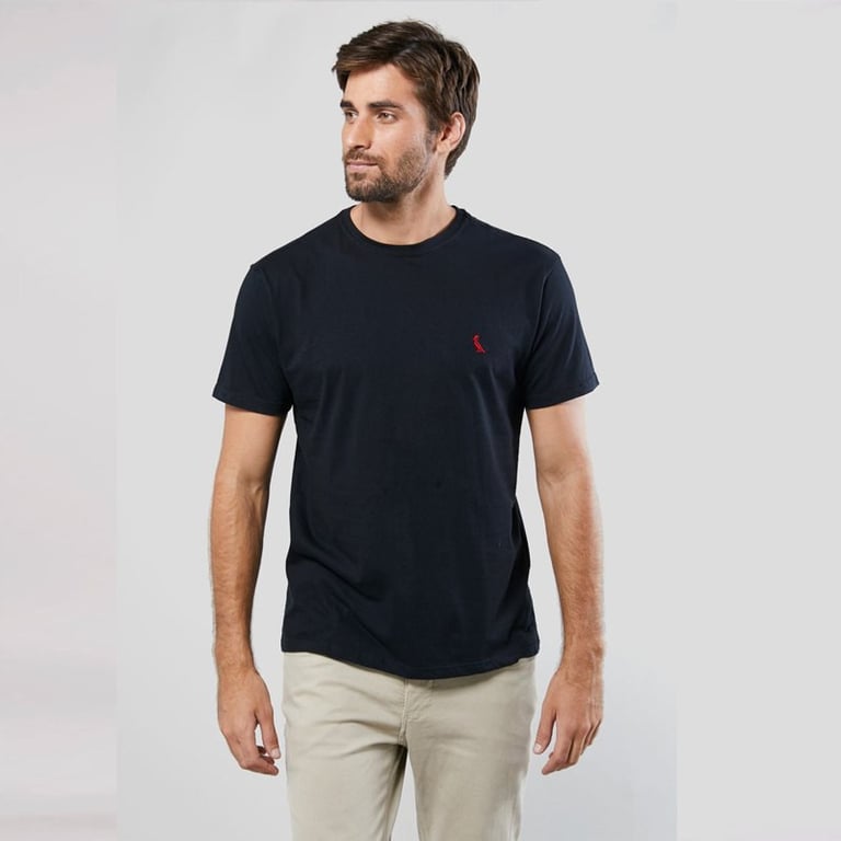 Men's plain t-shirt with a small logo on the front. The t-shirt has short sleeves and a round neckline. Comfortable material. Loose fit. Available in two colours.