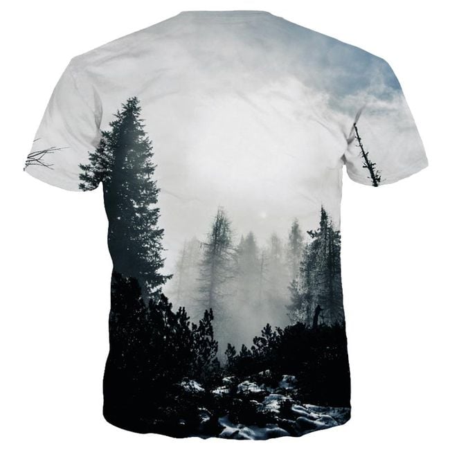 We offer a men's t-shirt that catches the eye at first glance. The motif of a winter forest in fog is intriguing and will attract everyone’s attention. As a bonus, there is a 3D effect created by the t-shirt. So gentlemen, treat yourselves and draw the ladies' gazes! Please carefully read the size chart located at the bottom of the page.