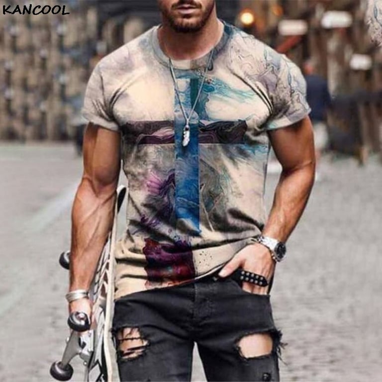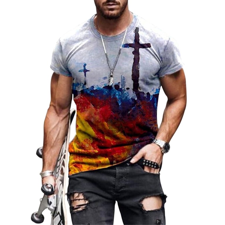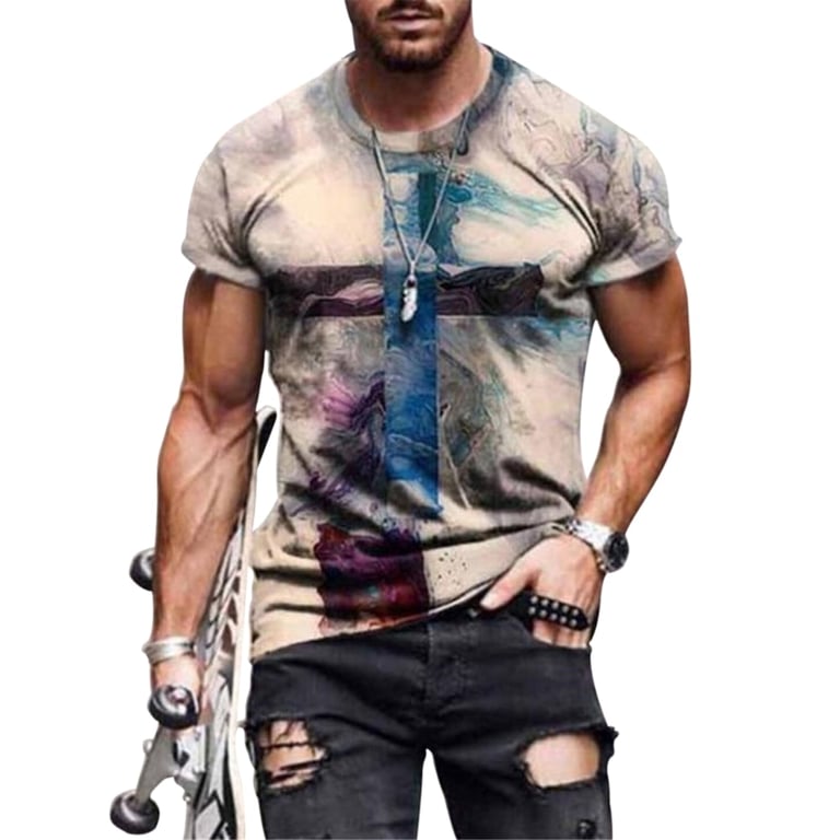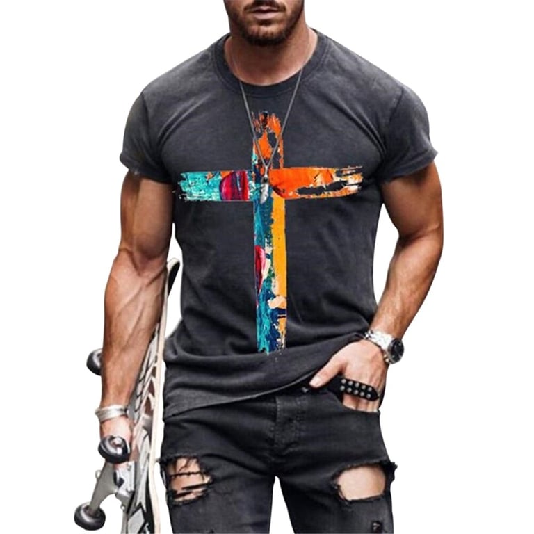 Men's T-shirt with a Cross and Short Sleeves
