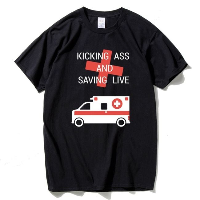 Men's cotton t-shirt with a healthcare-themed print.