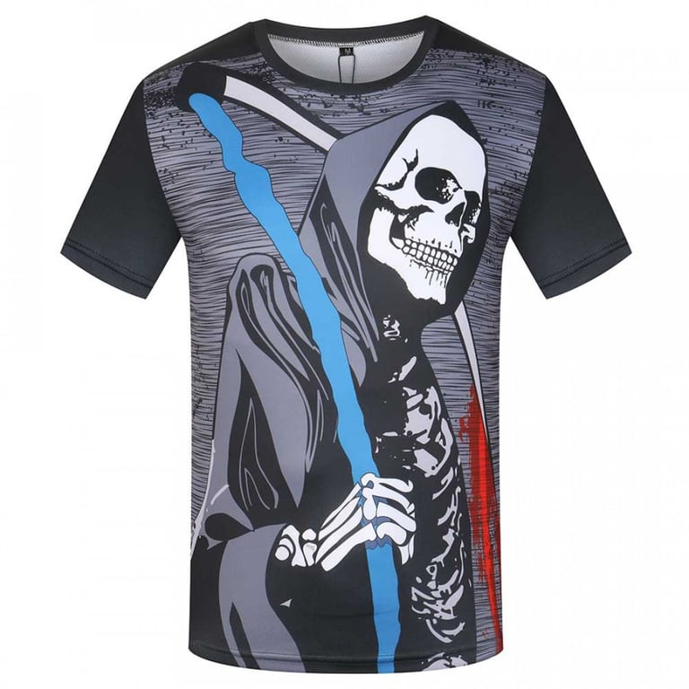 Men's short-sleeved t-shirt with a round neckline. The t-shirt features an original all-over print with a skull. Comfortable loose fit.