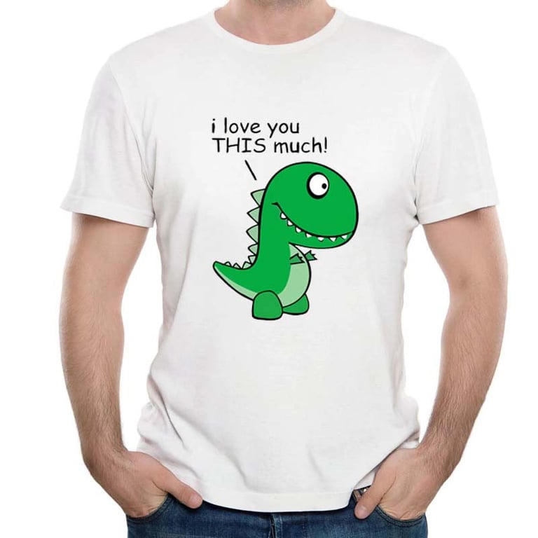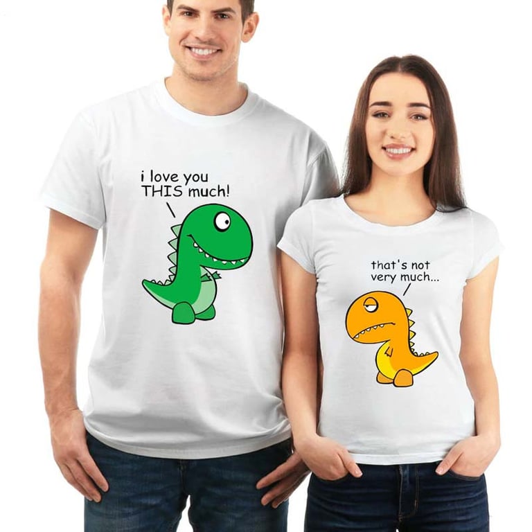Funny couple t-shirt – men's version – with a cute dinosaur print that will make you look great.