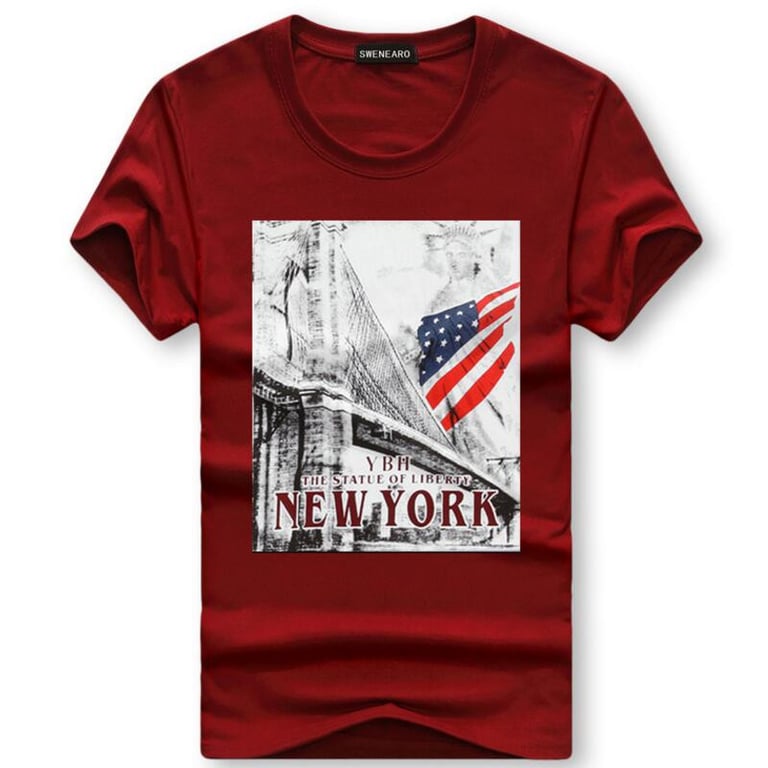 Men's short-sleeved t-shirt with a round neckline. Loose straight fit. The front features a colourful print with a New York motif. Available in multiple colour options.