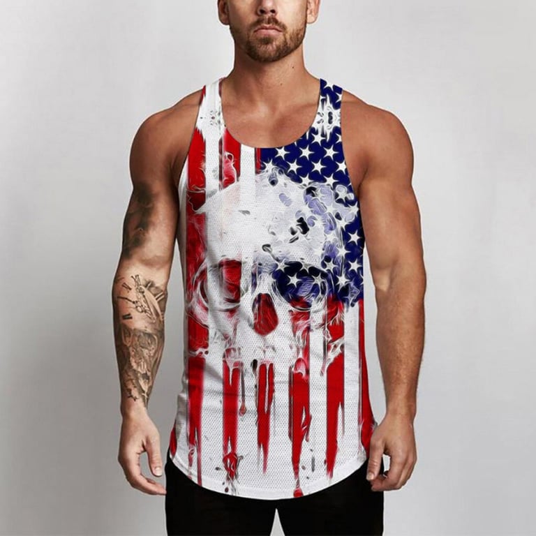 Men's tank top with narrow straps and a round neckline. Loose, comfortable fit. Original print on the front. Available in multiple variants.