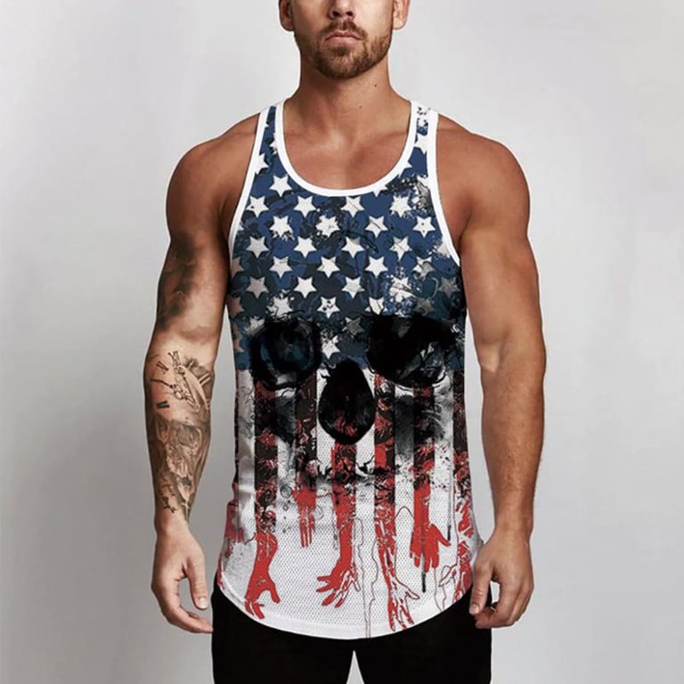 Men's tank top with narrow straps and a round neckline. Loose, comfortable fit. Original print on the front. Available in multiple variants.