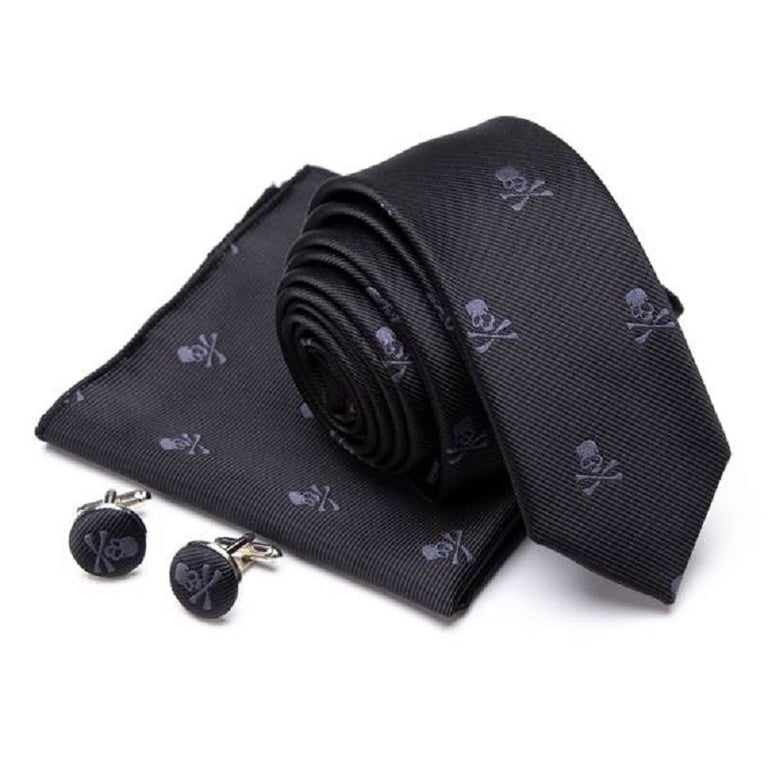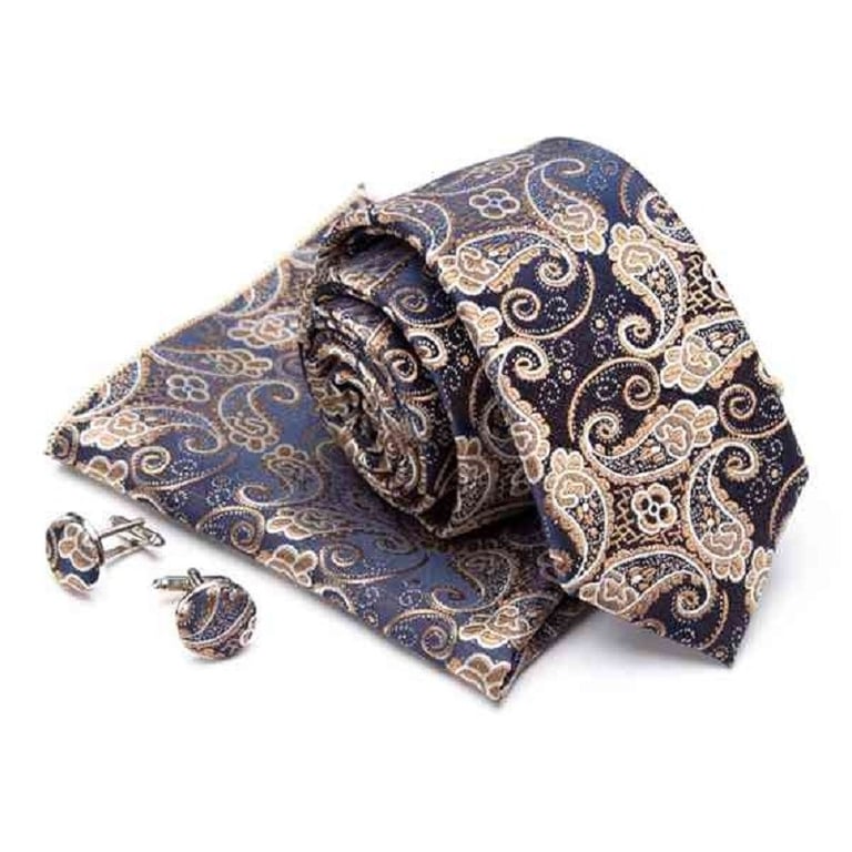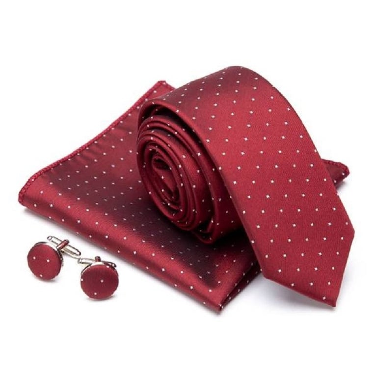 Contents of the package: 1x tie, 1x pocket square, 2x cufflinks