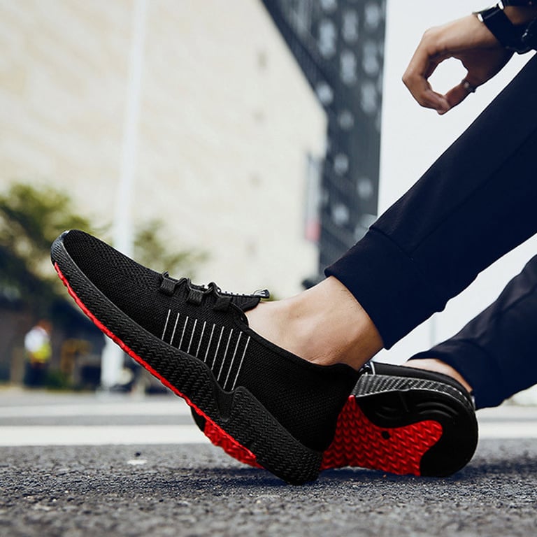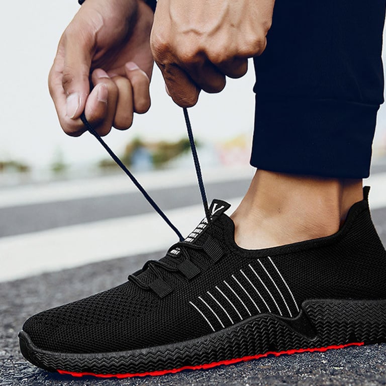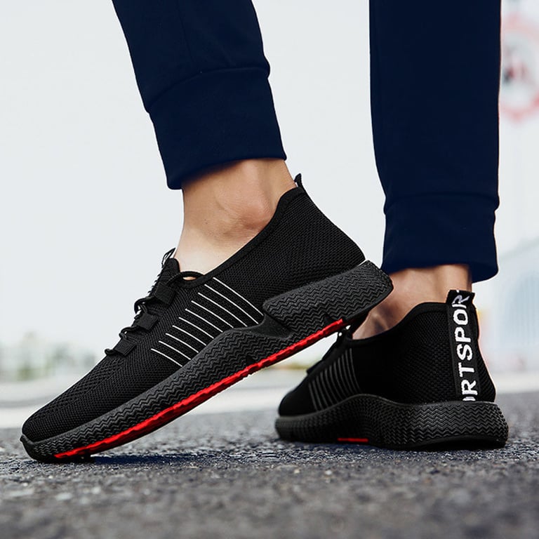 Men's sports trainers with elastic laces. Rubber sole with tread. Breathable. Available in two colour options.