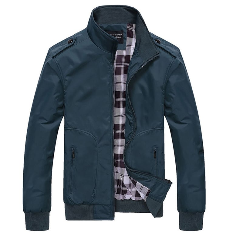 Men's spring/autumn jacket with a high collar. The jacket has a zip fastening. Two side zip pockets. Elasticated waist. Waterproof. Available in several colour options.