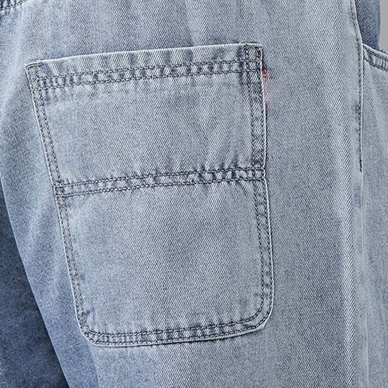 Trendy denim trousers enhanced with patches on the front of the legs.