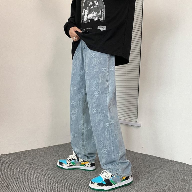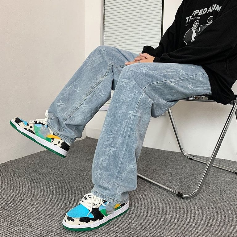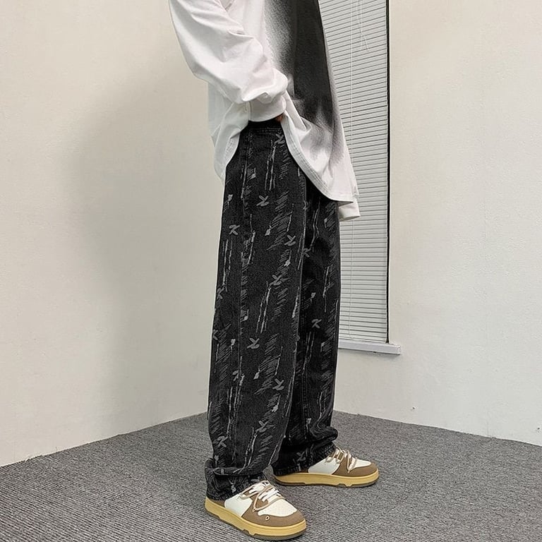 Men's trendy loose jeans with original Rowe print