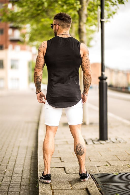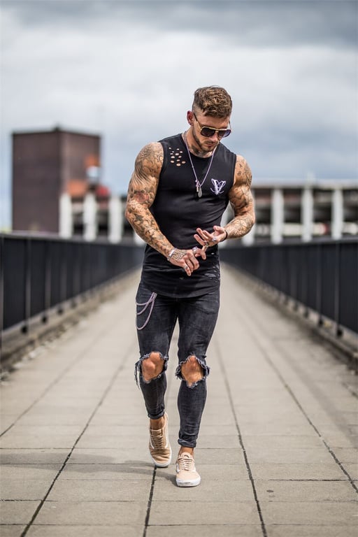 Men's Trendy Distressed Extended Sleeveless T-Shirt
