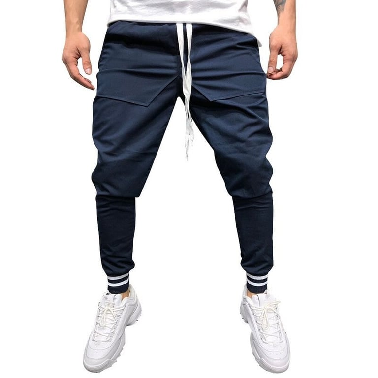 Men's loose-fitting trousers with tapered legs. Elasticated waistband. Side pockets. Available in multiple colour options.