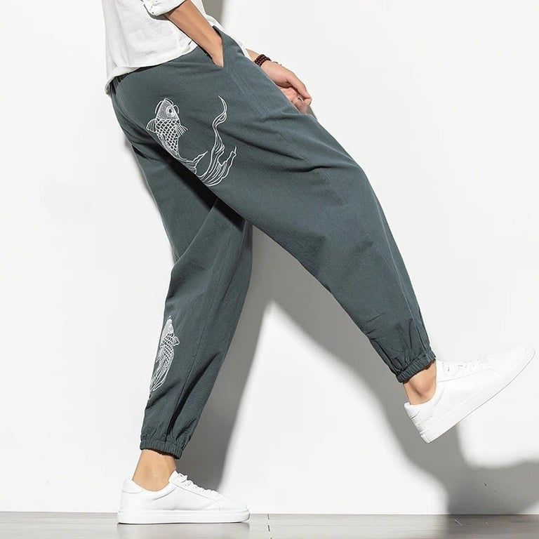 Men's trousers with fish.
