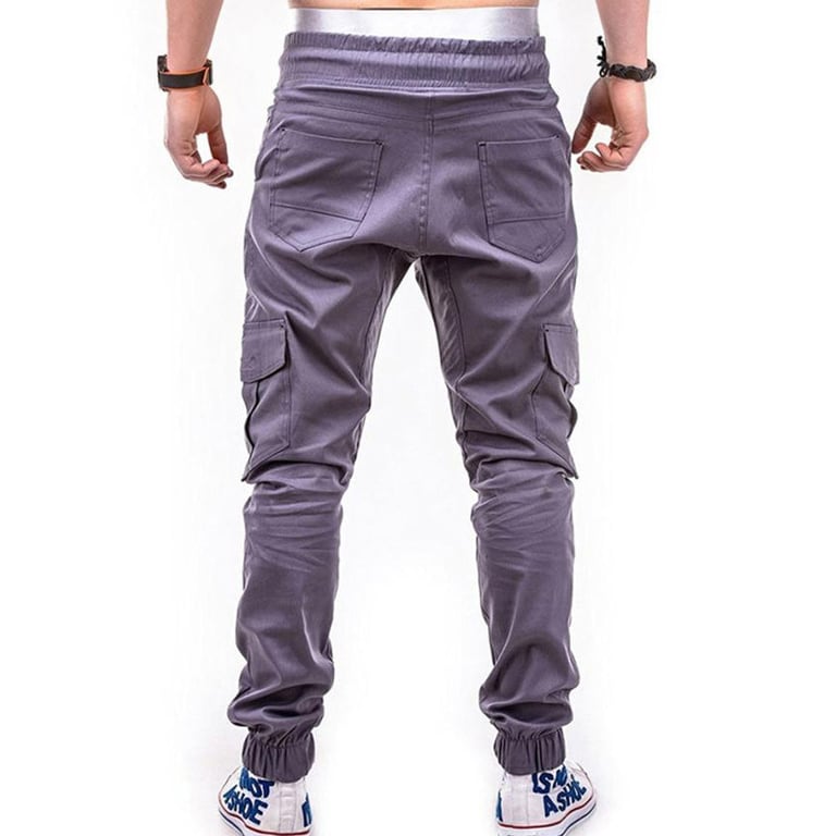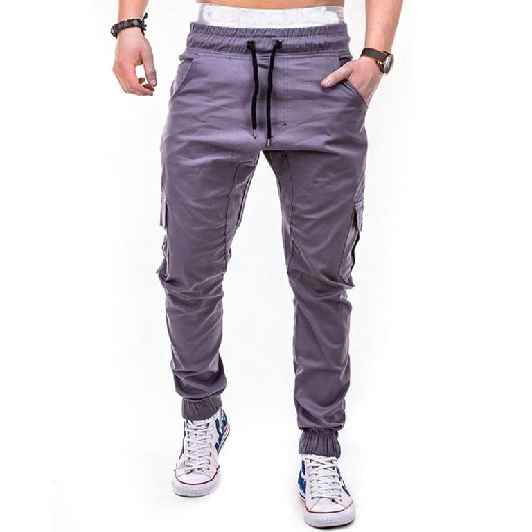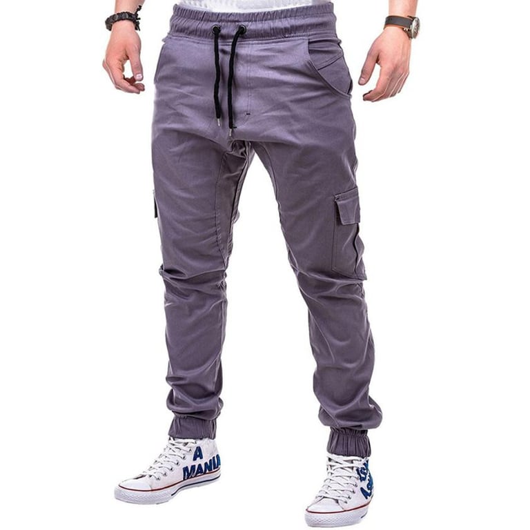 Men's trousers with an elastic waistband and drawstrings. Tapered legs with elastic. Side pockets. Available in multiple colour options.