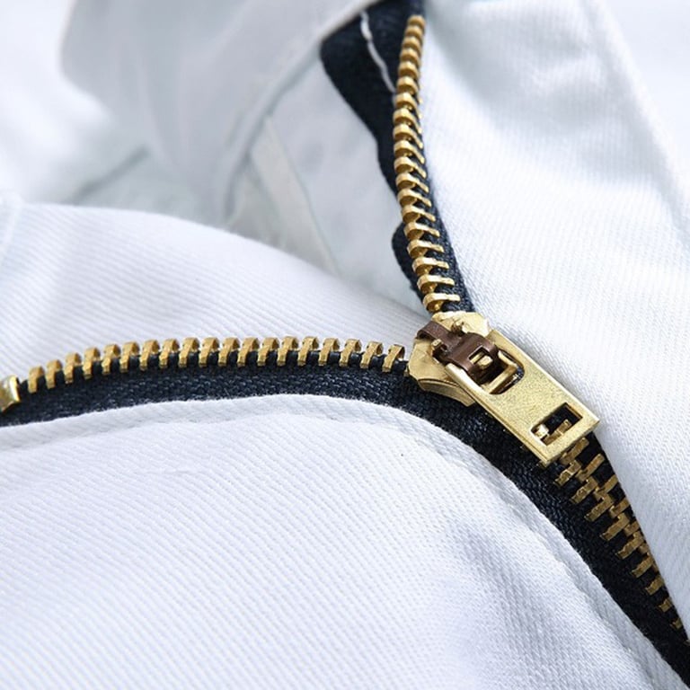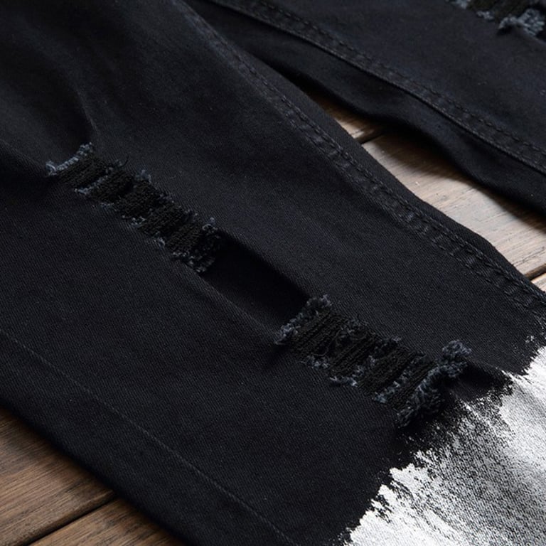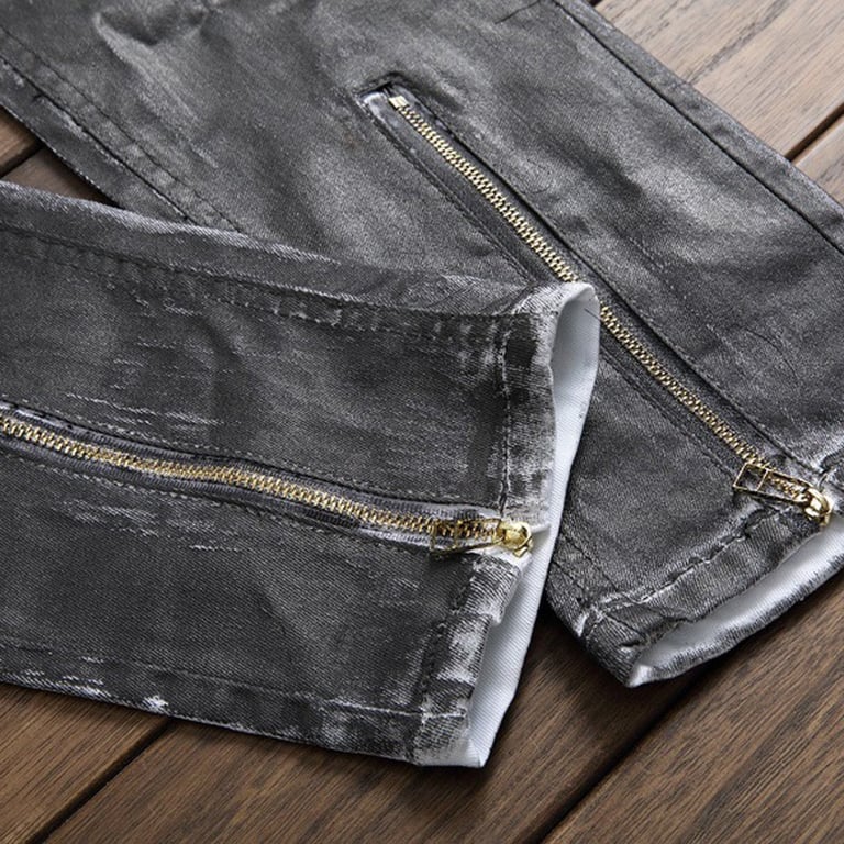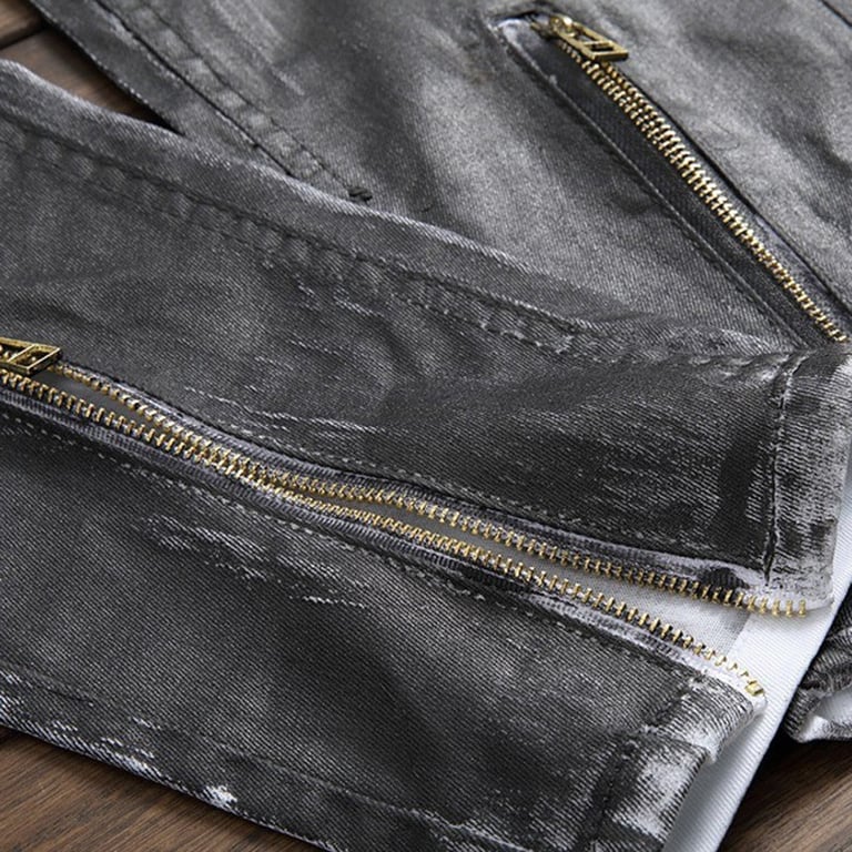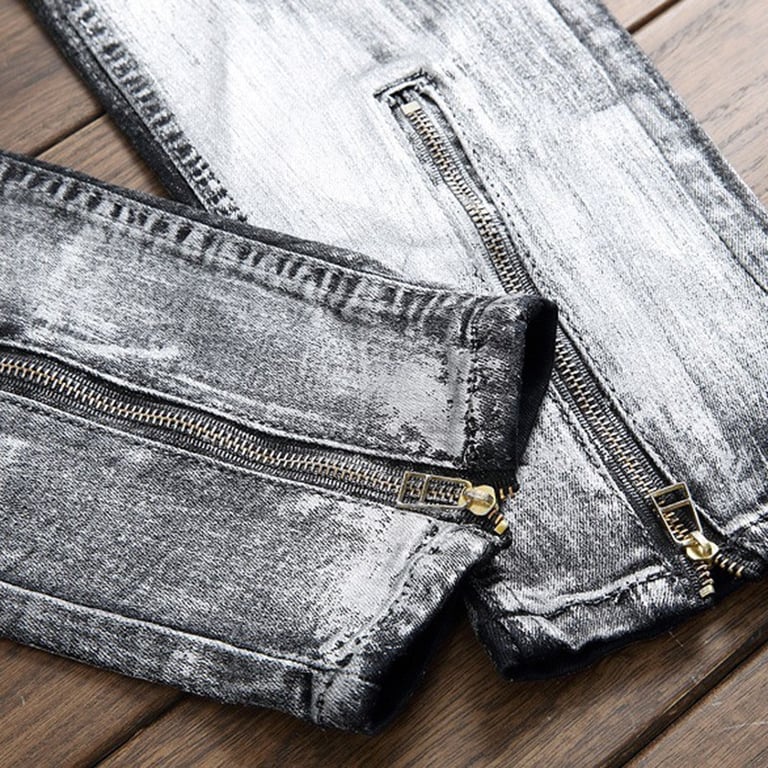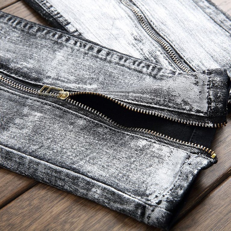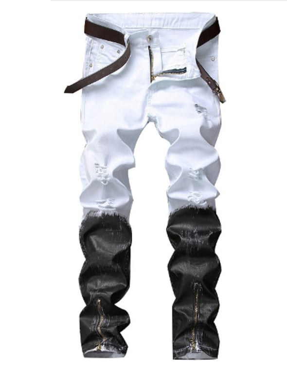 Stay trendy with these retro two-tone jeans that look as if half of the legs have been repainted, featuring a zip on the front of the legs.