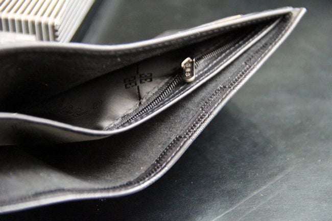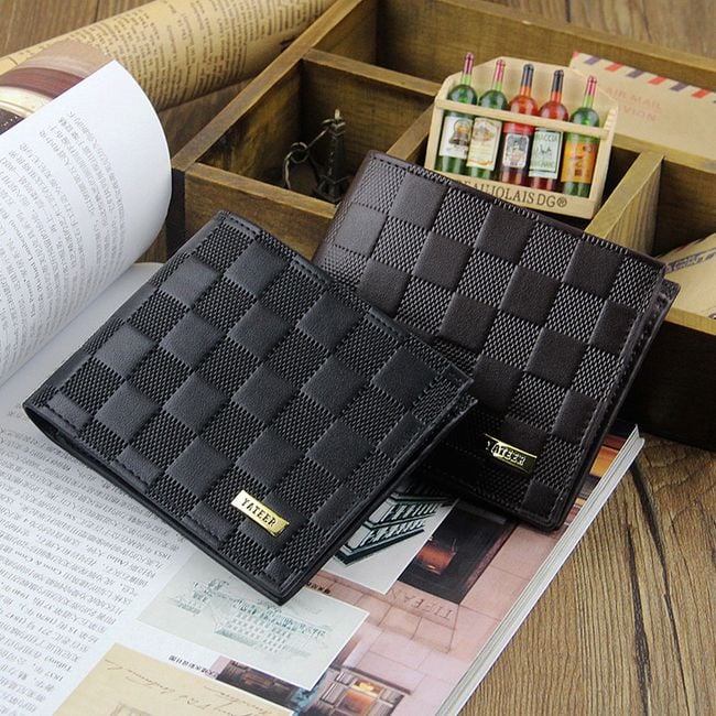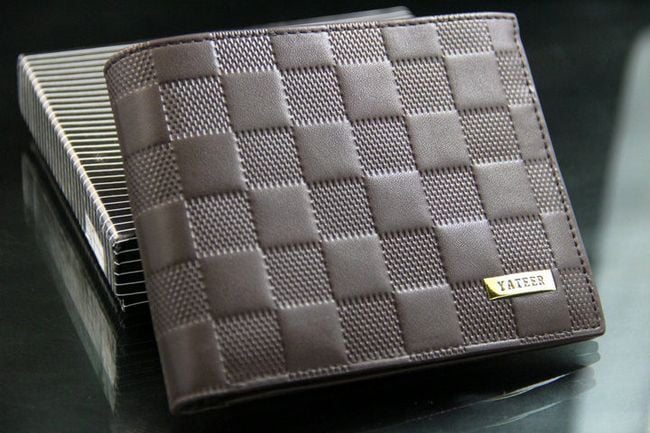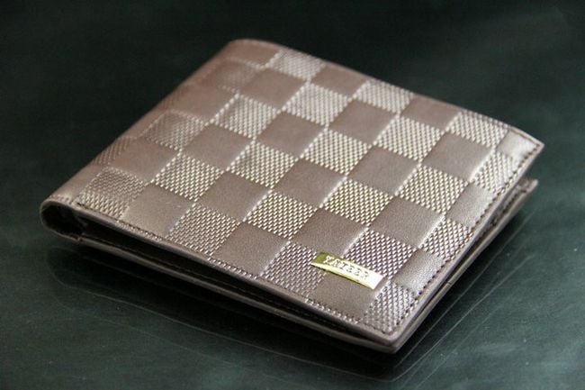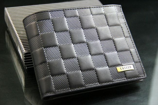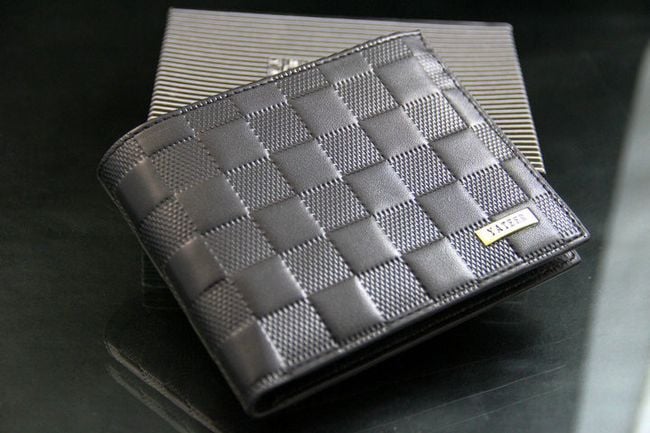 The wallet looks elegant and has a square pattern.