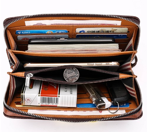 The men's wallet in a long design offers ample storage space - you will find numerous pockets for documents and payment cards, compartments for paper banknotes, receipts, etc.