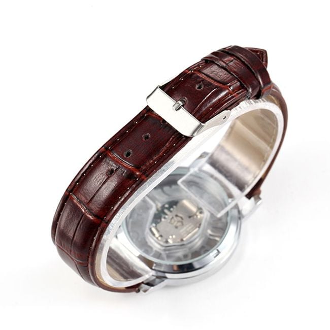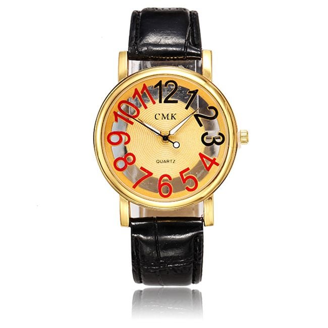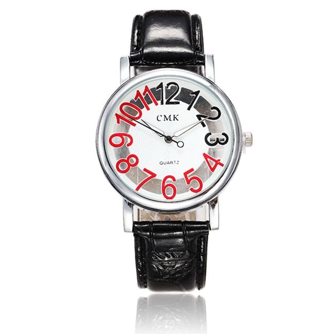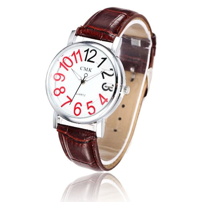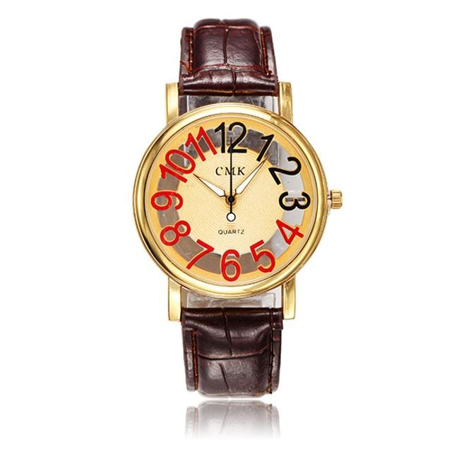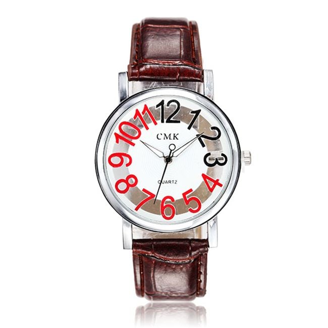 Men's watch with an original design is an elegant accessory for every man. The numbers on the dial are in two colours. The strap is made of artificial leather and is available in black and brown.