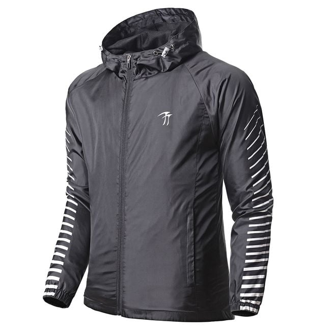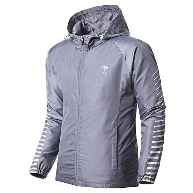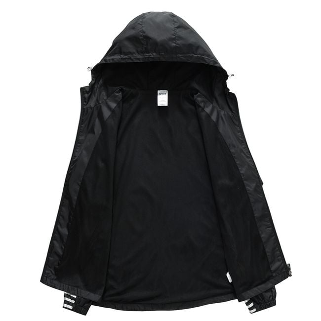 The windbreaker is suitable for both casual wear and sports and leisure activities, featuring a striped design on the sleeves and hood. You can choose from 2 colour options and several sizes.