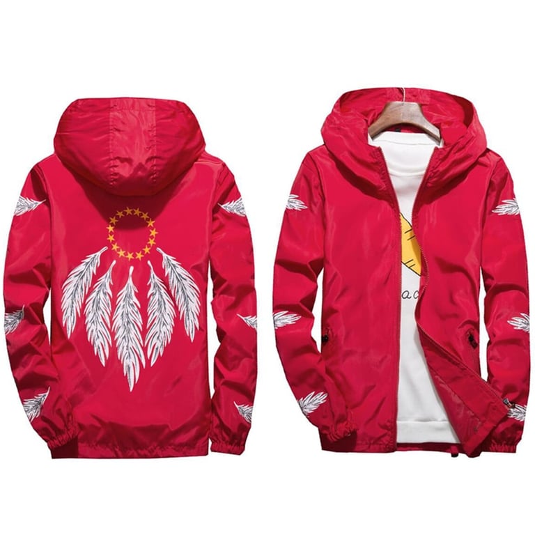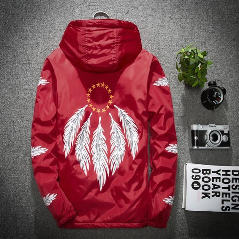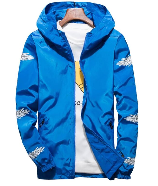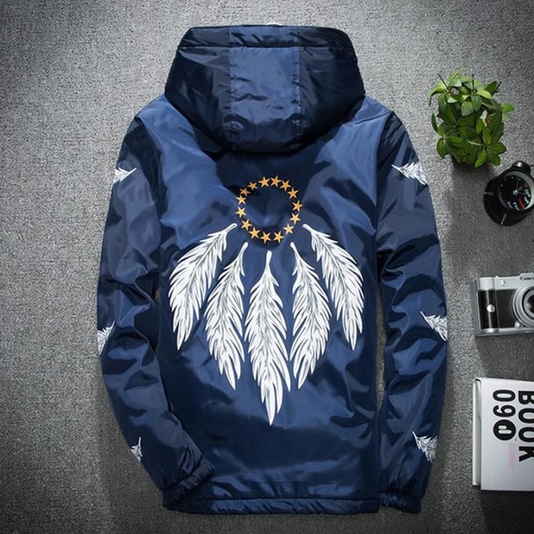 • Tags: men's jacket, men's windbreaker, windbreaker jacket, jacket with feather print