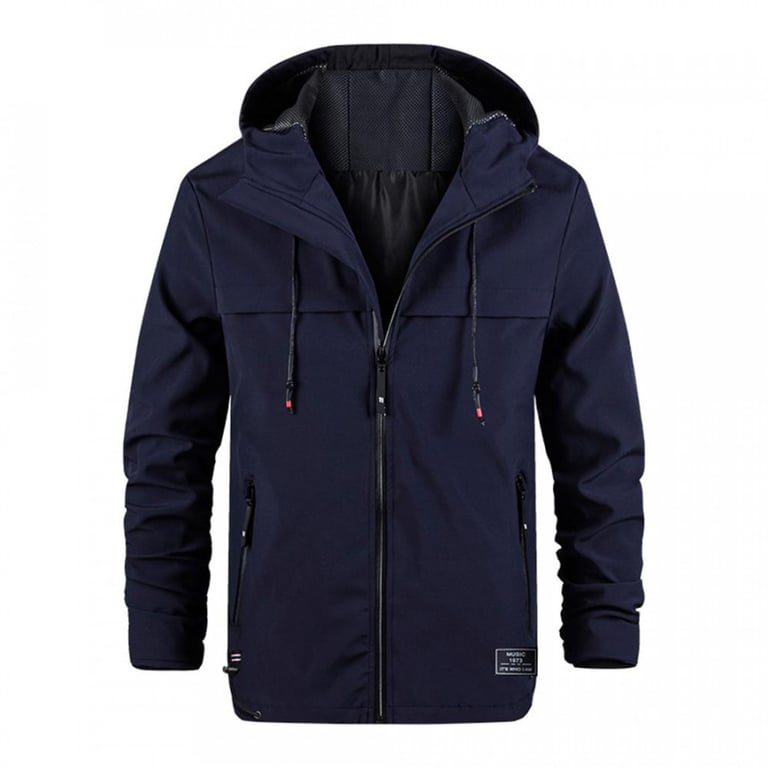 Men's windproof and waterproof jacket. The jacket has a straight cut with a hood and collar. Zip fastening and two side pockets with zips. Available in multiple colours.