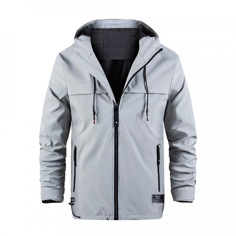 Men's windproof and waterproof jacket. The jacket has a straight cut with a hood and collar. Zip fastening and two side pockets with zips. Available in multiple colours.