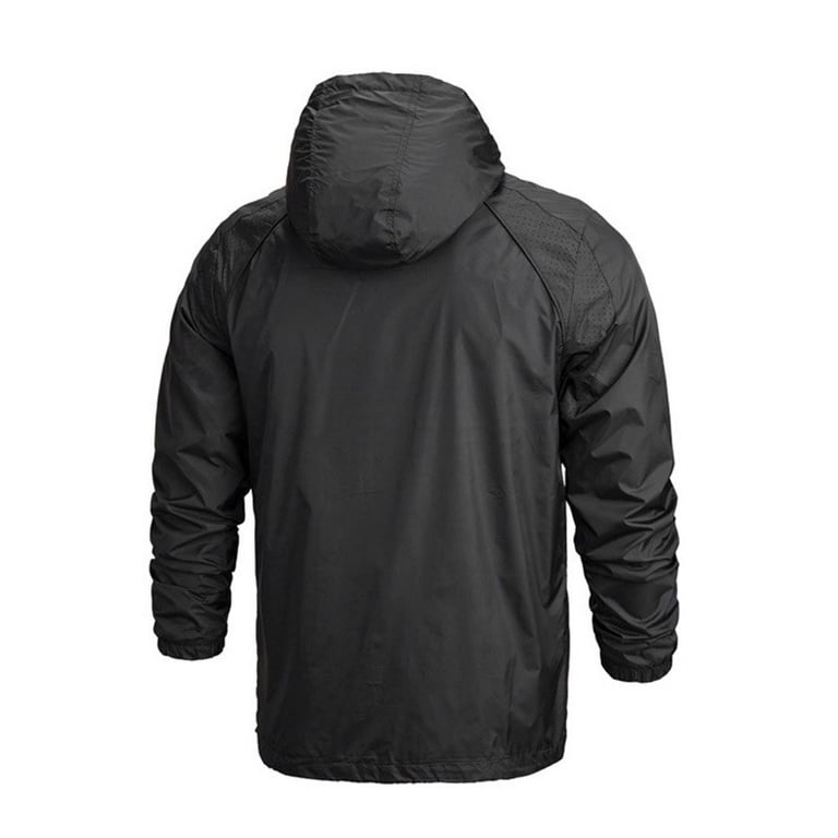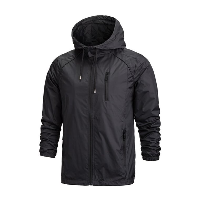 Men's lightweight jacket with a hood and drawstrings. Lightweight. Waterproof and windproof. Zip fastening. Side pockets and one chest pocket. Available in multiple colour options.