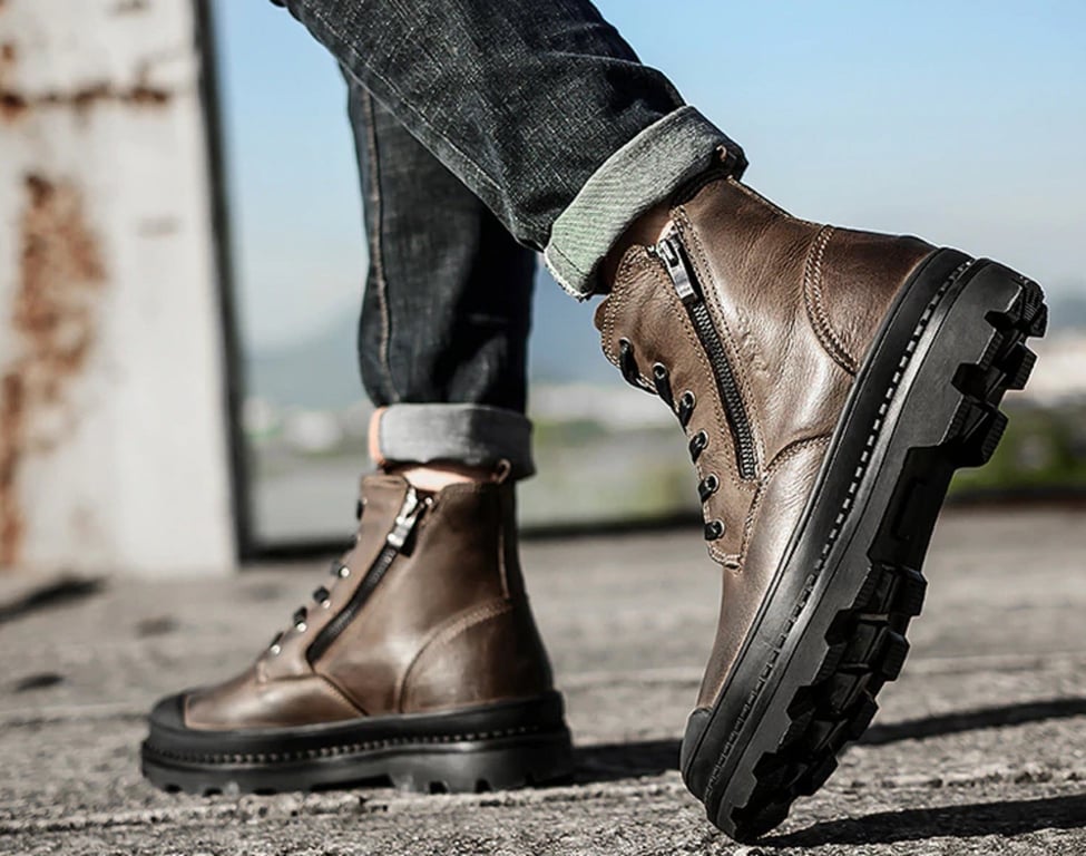 The boots are lace-up and made from high-quality materials.