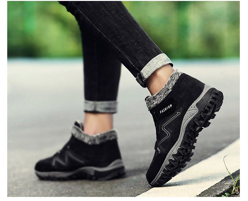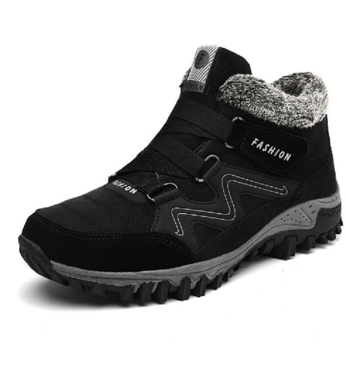 The footwear is waterproof, insulated, and has a non-slip sole.