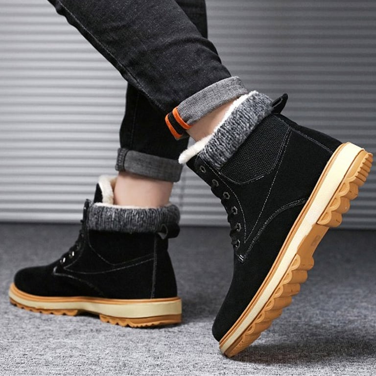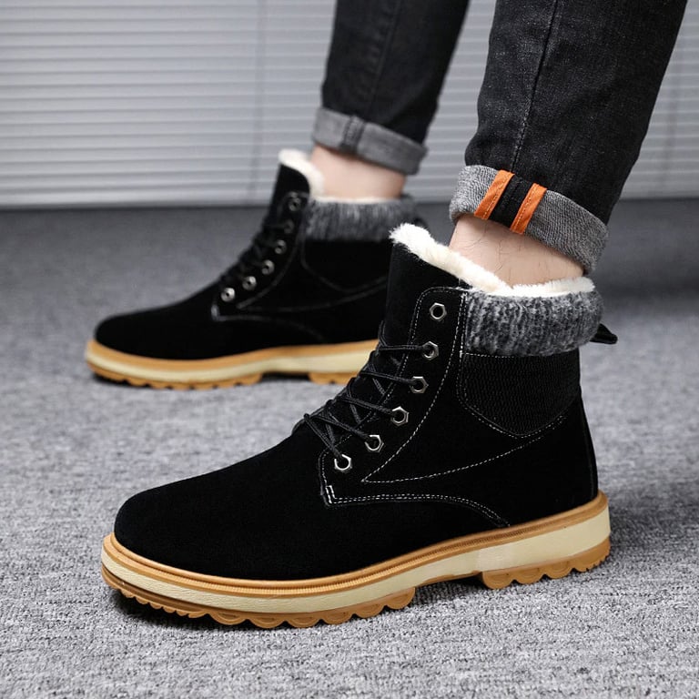 Men's winter ankle boots with lacing. The boots feature a warm plush lining and a non-slip sole. Available in several colour options.