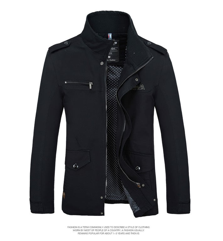 A quality men's jacket with a zip fastening and long sleeves. The jacket is in a luxurious style and will dazzle you at first sight. It is made from high-quality cotton.