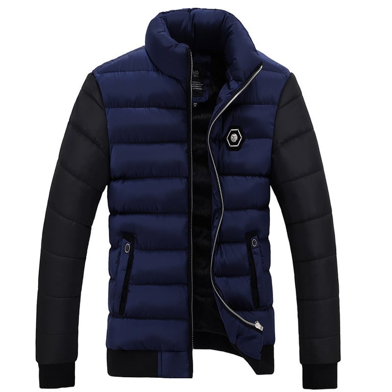 Men's winter padded jacket without a hood.